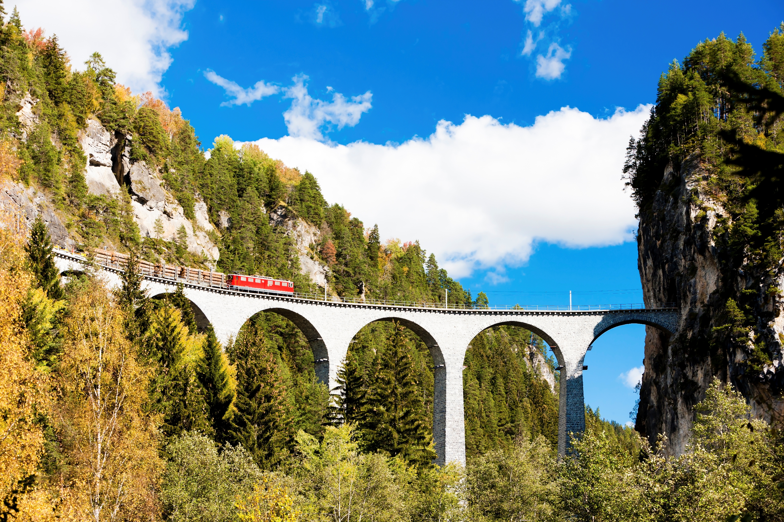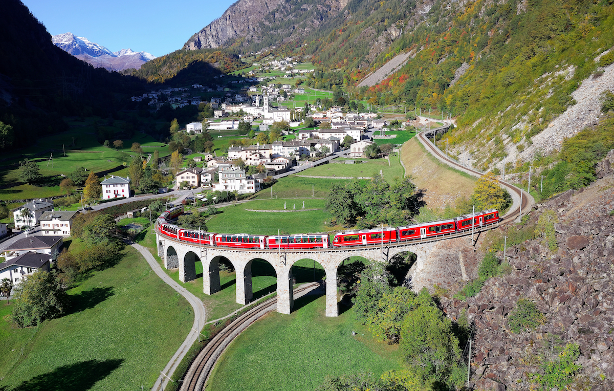 The Bernina Express is famous for its stunning views of the Swiss Alps. The train travels through a variety of landscapes, including mountains, glaciers, valleys, and forests, offering passengers unparalleled views of the natural beauty of Switzerland. The route also includes the famous Landwasser Viaduct, a 65-meter-high bridge that spans a deep gorge and is considered one of the most iconic railway structures in the world.
