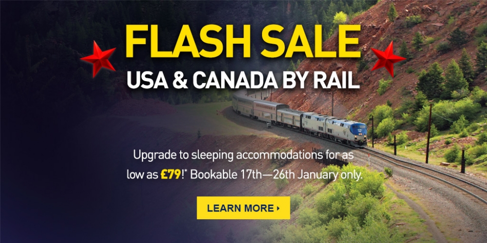 Now is a great time to add an incredible rail journey across the United States or Canada to your bucket list! Take the relaxing, scenic route across the entire country for an unforgettable, immersive experience unlike any other through some of the best scenery and cities in the world. Enjoy comfortable accommodations and excellent food onboard iconic trains, and marvel at the sights right outside your window. Consider the following top rail journeys through the U.S. and Canada when planning your next holiday, and save BIG on all North American rail journeys with Railbookers upcoming FLASH SALE! 1. NORTHERN RAIL EXPERIENCEVenture from the breathtaking great plains of the American Midwest to the serene waters of the Pacific Coast on this scenic rail journey from Chicago to San Francisco, with a stop in Seattle. Enjoy the landscape as you travel along major portions of the Lewis and Clark trail. Explore Seattle on a hop-on, hop-off sightseeing tour. Discover the sights of San Francisco. Spend some quality time in two majestic parts of Northern California: Muir Woods and Sausalito. Then head back to the “Windy City” on board one of the most beautiful train trips in all of North America. CLICK HERE for more information on this journey. 2. ACROSS AMERICA BY RAILTravel from sea to shining sea on this 15-day journey across America. Start off in the bustling streets of New York City and then head on to America’s capital of Washington, DC. Experience the patriotic monuments that make the city so special before your journey on to Chicago. While in Chicago, make sure to take time to visit the famous Navy Pier. Next, visit Denver, a city surrounded by majestic mountain ranges. Following your time in Denver, you will continue on to historic Salt Lake City for two nights before ending in San Francisco. A true cross-country journey awaits! CLICK HERE for more information on this journey. 3. CANADIAN ROCKIES DISCOVERY EASTBOUNDExperience the gorgeous scenery and breathtaking landscapes of the Canadian Rockies on this rail journey from Vancouver to Calgary. See amazing views of Vancouver from hundreds of feet above the ground at the Vancouver Lookout. Stroll down the charming cobblestone streets of Victoria. Get up close and personal with massive glaciers during an interactive ride on the Ice Explorer. See the spectacular natural treasures of Jasper. Relax in the historical Fairmont Chateau Lake Louise. Discover all Calgary has to offer. CLICK HERE for more information on this journey 4. ULTIMATE CANADA COAST TO COAST EASTBOUNDExperience an epic rail journey traveling east across picturesque Canada! Your vacation begins in the vibrant, diverse city of Vancouver, also known as the “Hollywood of the North.” Spend two days discovering the city before journeying east on a scenic overnight train ride to the Canadian Rockies and the incredible mountain towns of Jasper and Banff for a true Canadian alpine experience! Next, continue east on the train on an unforgettable journey through the Canadian Rockies and the beautiful plains to Canada’s largest city, Toronto. While there, enjoy a full-day tour to magnificent Niagara Falls. Three more classic eastern Canadian cities – European-influenced Montreal and Quebec City, and the quaint seaside community of Halifax – round out this coast to coast Canadian experience! CLICK HERE for more information on this journey. 5. CANADIAN ROCKIES AND ALASKA RAIL AND SAIL ON THE NORWEGIAN JEWELDiscover the best of the Canadian Rockies and Alaska on this land and sea adventure! Your journey begins in the gorgeous mountain towns of Banff and Jasper, where you’ll experience amazing valley, glacier, lake and mountain views. From Jasper, take a breathtaking ride on the train through the Canadian Rockies to Vancouver, where you’ll spend two nights enjoying all the city’s best sights and sounds. From Vancouver, embark on a spectacular seven-night Alaskan cruise with exciting stops in Ketchikan, Skagway, Juneau and Icy Strait Point. CLICK HERE for more information on this journey. For more information on all Railbookers holidays through the U.S. and Canada, visit our WEBSITE!